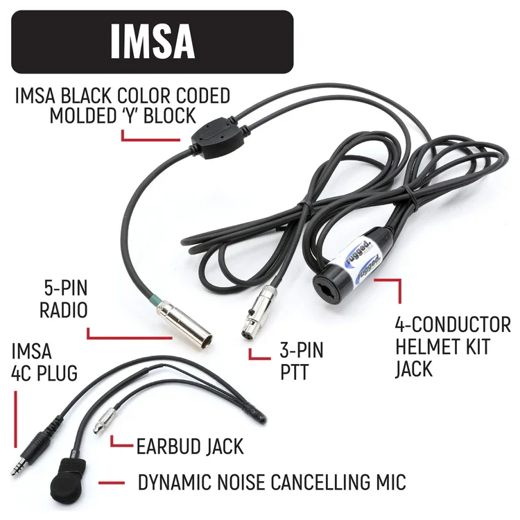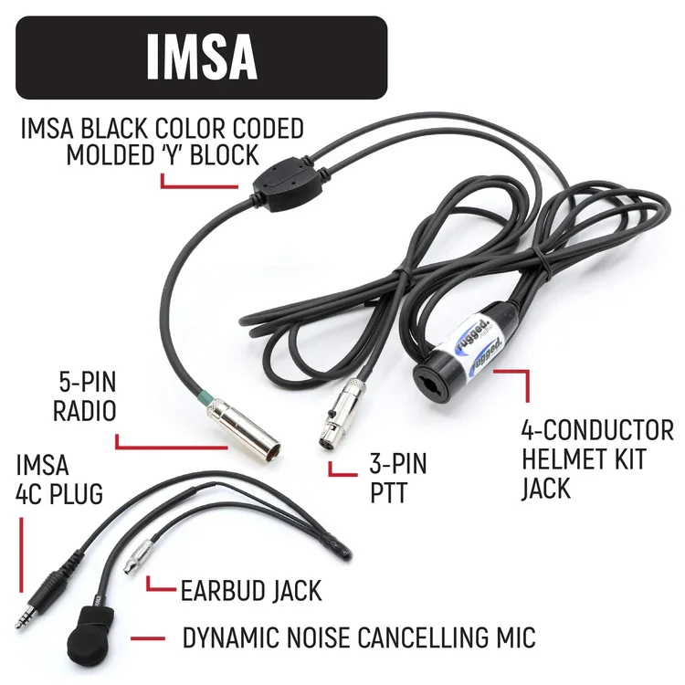 Rugged Radios IMSA 4C Wired Helmet Kit with Mic, 3.5mm Ear Bud Jack, and Coil Cord